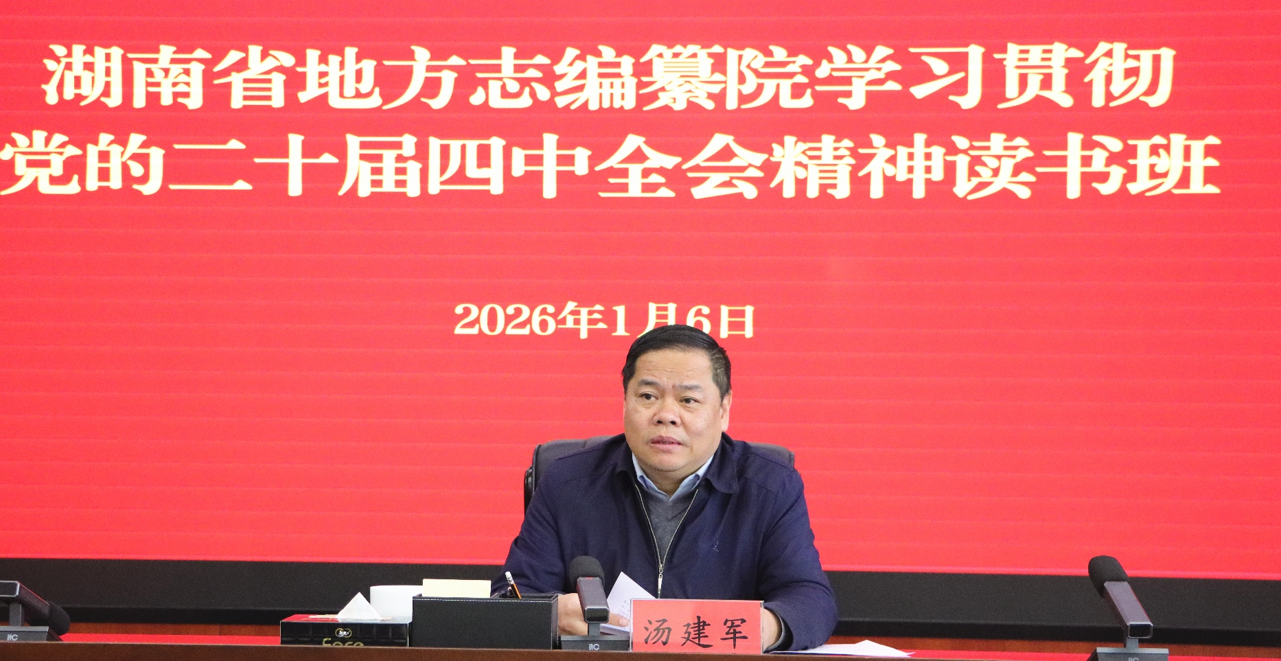 2026年1月6日,省地方志编纂院举办学习贯彻党的二十届四中全会精神读书班,院党组书记汤建军出席并讲话。