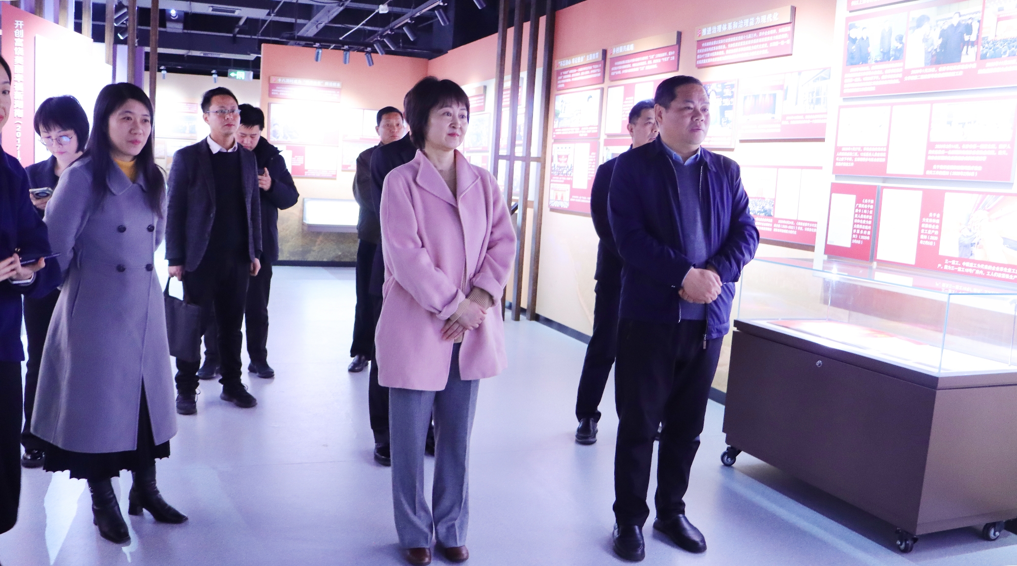 汤建军一行参观“袁隆平与杂交水稻档案陈列展”与“走向辉煌——中共湖南省委百年档案文献展”,并走进特藏库,近距离察看珍贵档案的保存与保护情况。通过参观,交流组对省档案馆在档案资源的收集保管、专题展览策划及珍贵文献保护利用等方面的工作成效有了直观深入的认识。